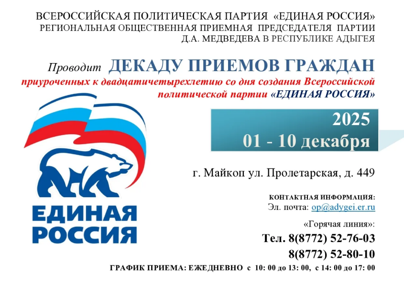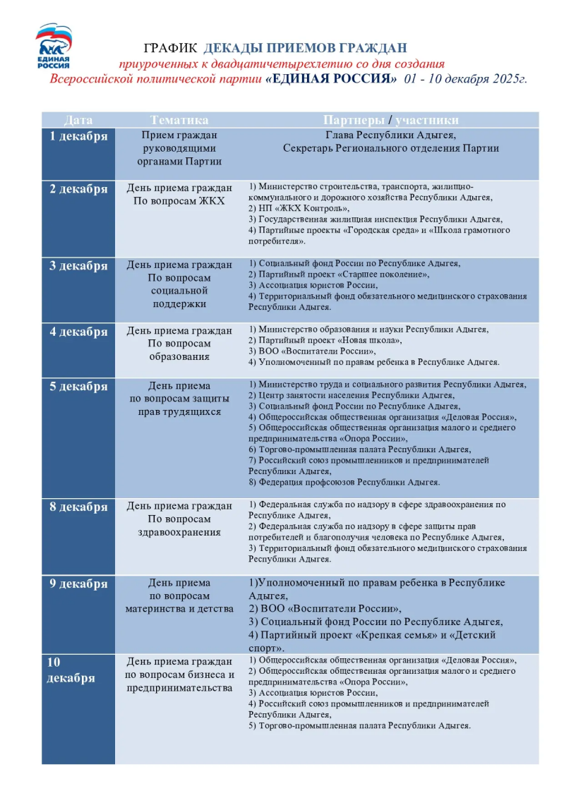 Декада приёмов продлится до 10 декабря. Это отличная возможность напрямую обратиться к представителям власти и партии.