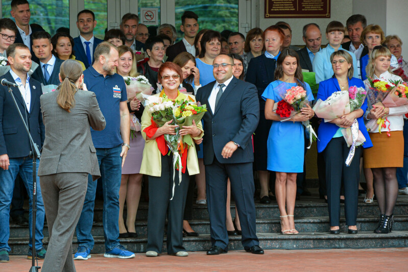 Андрей Юрьевич и Наталья Евгеньевна поздравили педагогов и лицеистов, пообщались с ребятами.