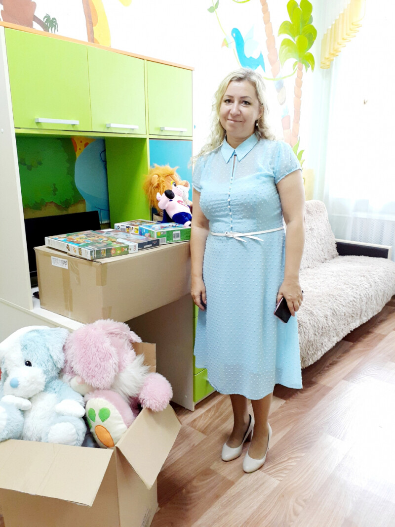 Уполномоченный по правам ребенка в Брянской области Инна Николаевна Мухина передала сотрудникам благотворительного фонда "Ванечка" подарки для детей