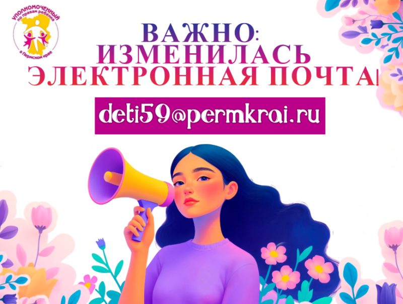 Сообщаем Вам, что с 1 января 2026 года изменился адрес электронной почты Уполномоченного по правам ребенка в Пермском крае.
