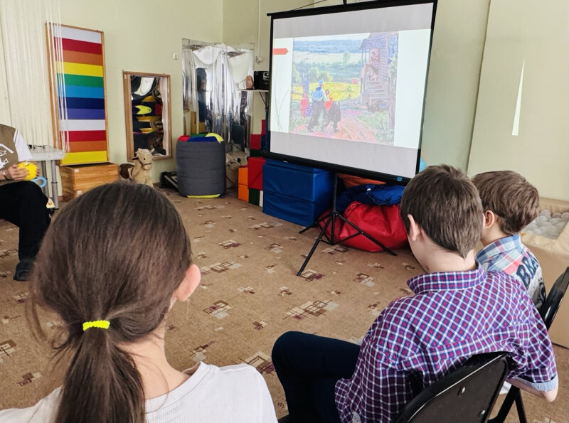 На встрече с ребятами из социально-реабилитационного центра «Гармония» познакомились с картиной «Дом» Федора Павловича Решетникова.