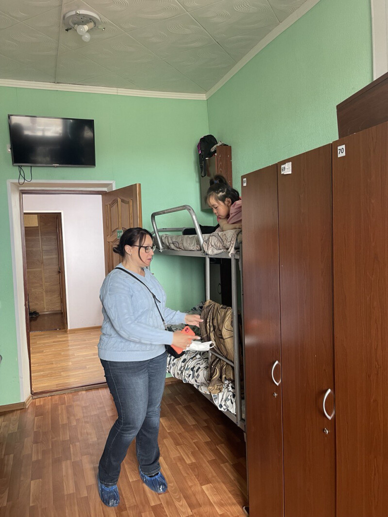 По итогам контрольной поездки: открыты туалетные комнаты, в коридорах и комнатах проходит влажная уборка, заменены комплекты постельного белья, открыли дополнительную комнату в столовой. К сожалению, во время визита с 12:00 до 13:00 часов, Уполномоченному не удалось попасть в столовую, она была закрыта, ребята сами рассказали об изменениях.