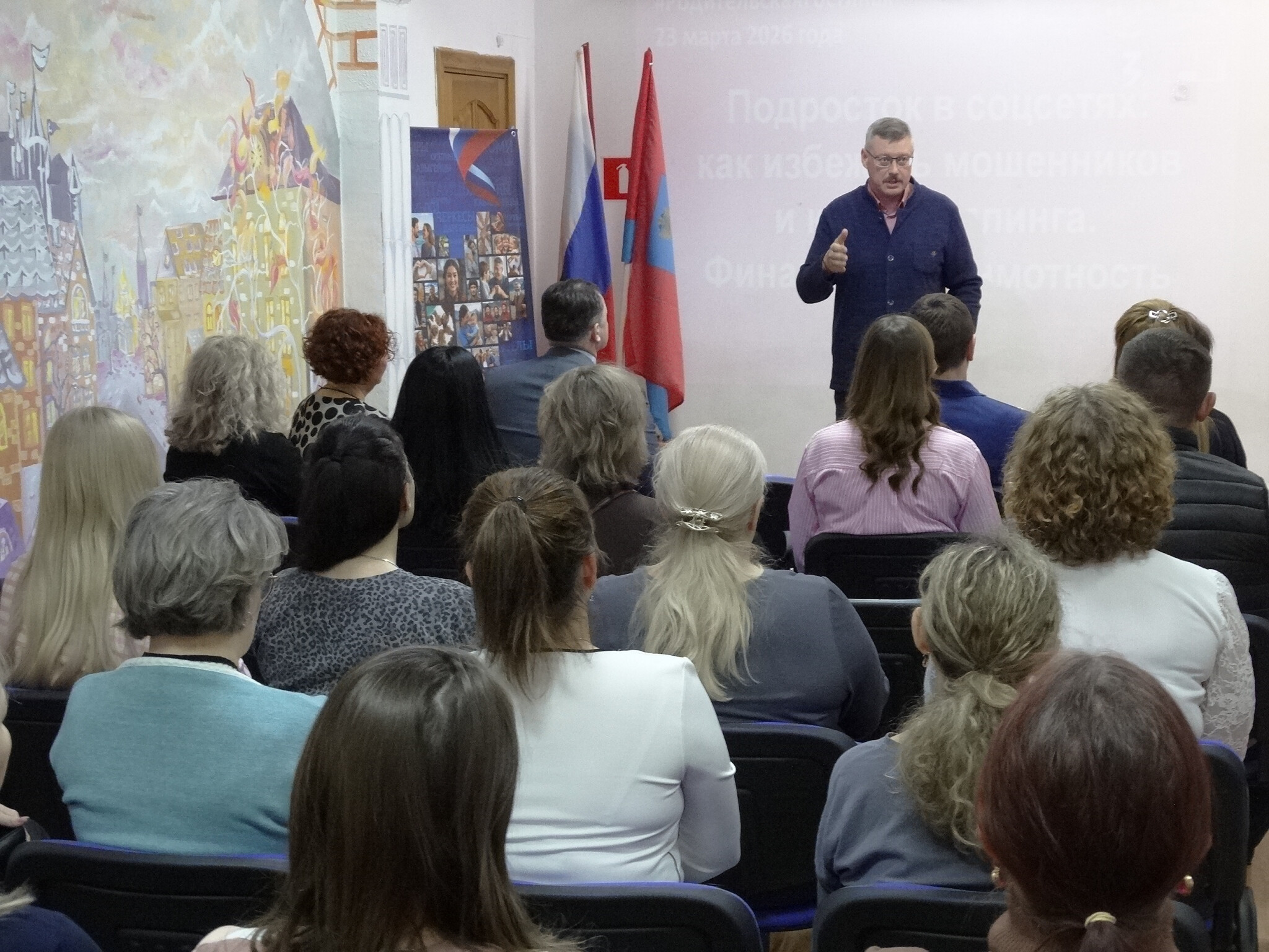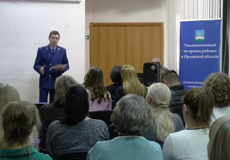 Первая встреча, посвященная актуальной теме «Подросток в соцсетях: как избежать мошенников и кибербуллинга», собрала множество неравнодушных родителей. Среди почетных гостей мероприятия были Уполномоченный по правам ребенка в Орловской области Константин Домогатский, председатель Орловского городского Совета народных депутатов Владимир Негин, директор филиала Российского общества «Знание» в Орловской области Елена Сухоленцева, заместитель прокурора Северного района г. Орла Владимир Корнеев.