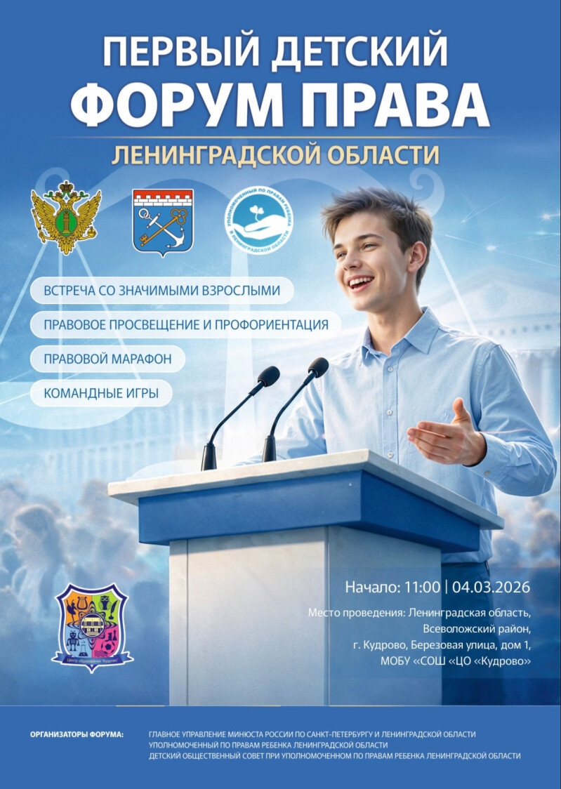 Уже завтра состоится Первый детский Форум Права Ленинградской области. У нас подготовлена насыщенная программа и ожидается большое количество гостей!