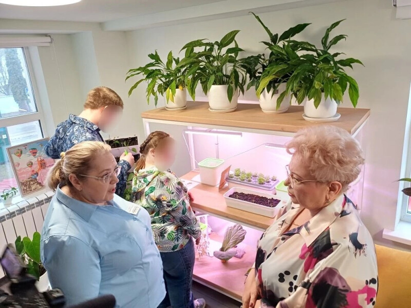 Оксана Хлякина осмотрела основные помещения центра. Сначала она побывала в швейной мастерской. Дети с гордостью показали гостье свои работы: яркие фартуки, забавные игрушки и другие изделия — от простых поделок до элементов одежды. Видно было, как ребята гордятся освоенными навыками шитья. Затем путь лежал в мастерскую «Зелёный уголок». Здесь воспитанники занимаются садоводством: ухаживают за комнатными растениями и познают основы ботаники. Дети с воодушевлением рассказали Оксане Хлякиной о своих зелёных питомцах и поделились секретами ухода за ними.