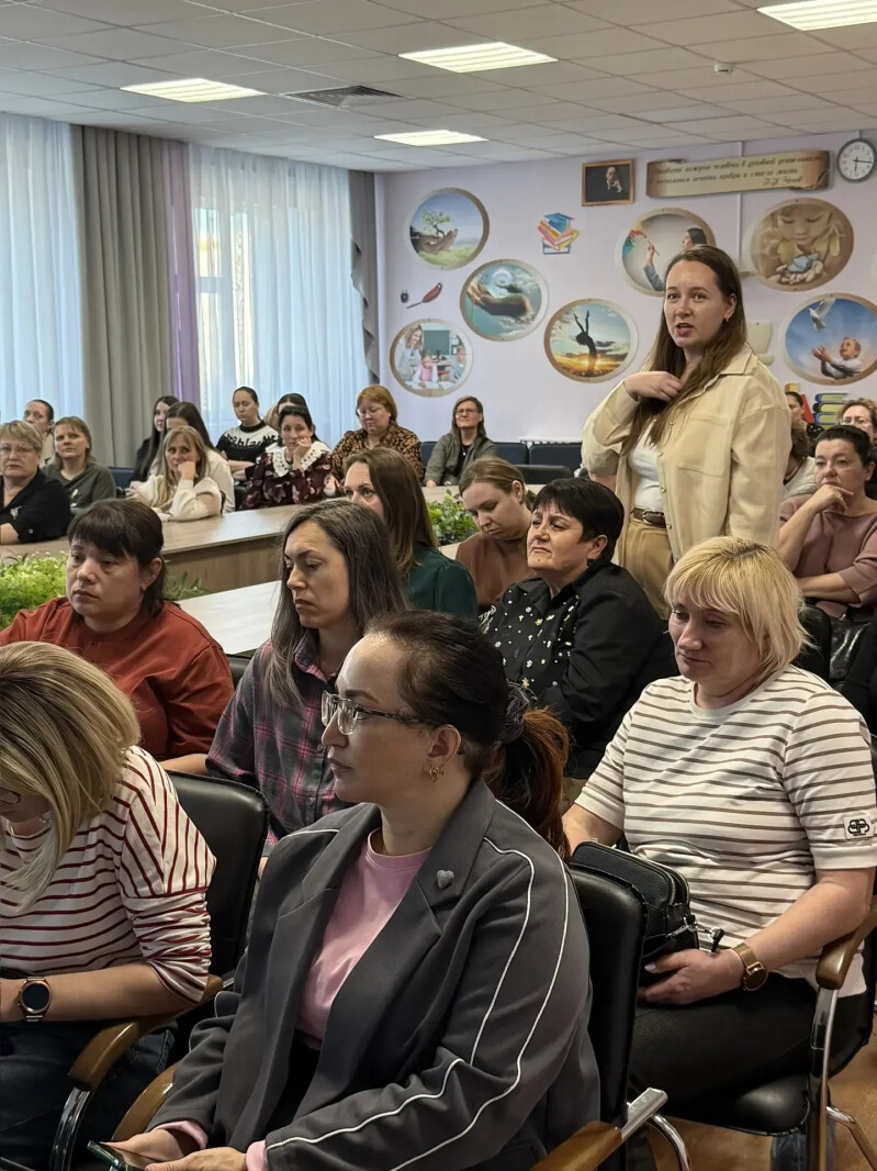 Надежда Болтенко выступила главным спикером встречи. В центре доклада была психологическая безопасность подростков и усиление взаимодействия «Семья + Школа»: только в тандеме возможно обеспечить благополучие ребёнка.