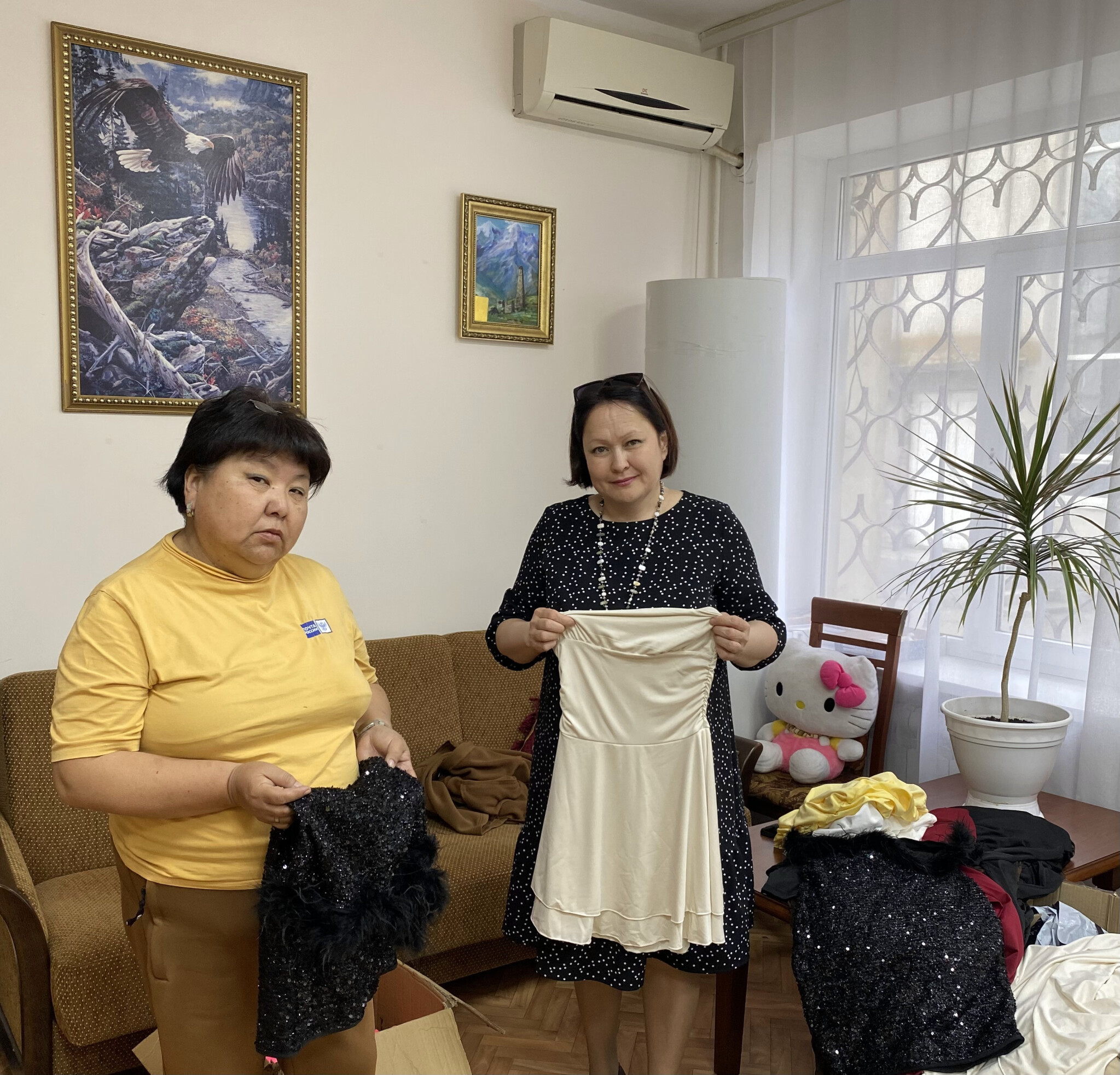 Уполномоченный передал помощнику художественного руководителя Национального драматического театра имени Б.Басангова одежду для создания костюмов в спектаклях, полученную в качестве безвозмездной помощи от ИП Головина Владислава Евгеньевича. В постановках театра также активно участвуют дети, проводятся массовые мероприятия.
