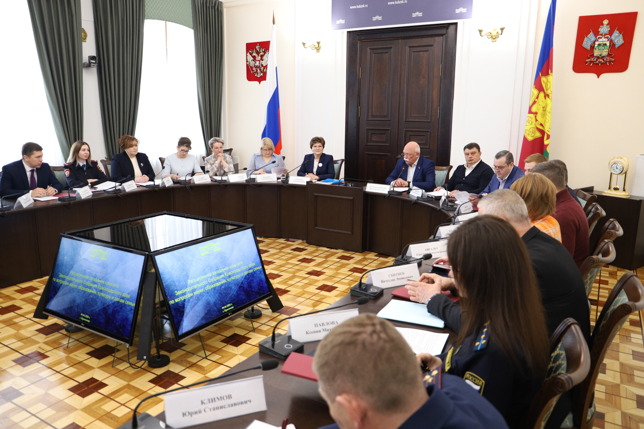 9 апреля 2026 года в Законодательном Собрании Краснодарского края состоялось расширенное заседание комитета ЗСК по вопросам науки, образования, культуры и делам семьи по обсуждению доклада Уполномоченного по правам ребенка в Краснодарском крае за 2025. Провел заседание заместитель председателя ЗСК – председатель комитета по вопросам здравоохранения и социальной защиты населения Н.Н. Петропавловский.