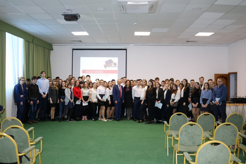 С приветственным словом к собравшимся обратилась заместитель главы администрации Н.В. Корчёмкина. Наталья Владимировна отметила, что предстоящий урок права проходит не в классическом понимании привычного школьного урока, а в иной форме: собравшимся предстоит узнать об основных правах несовершеннолетних, видах и сроках наступления ответственности, пожелала ученикам продуктивной работы и поблагодарила организаторов за сотрудничество.