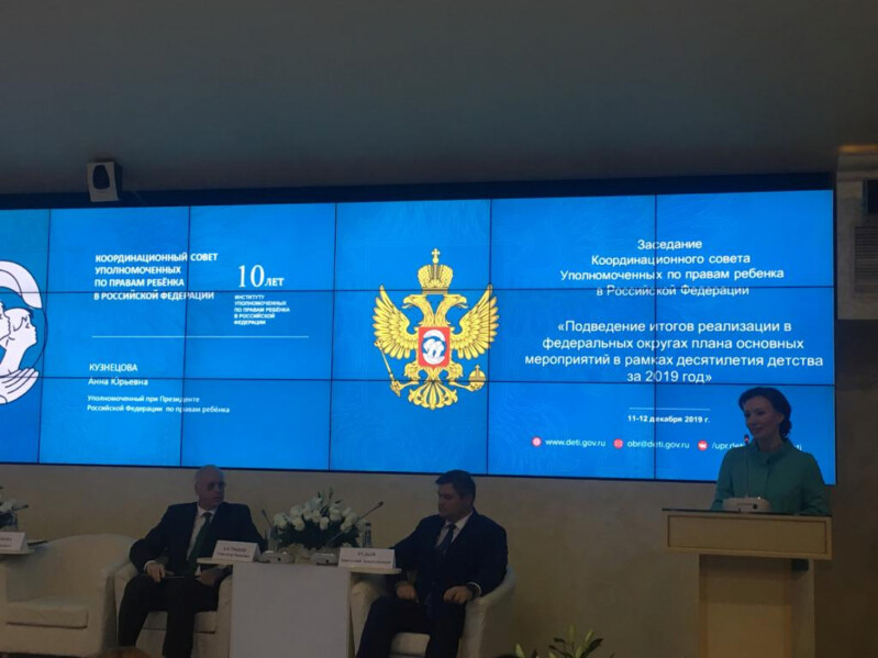 11-12 декабря в г. Москве прошло заседание Координационного совета Уполномоченных по правам ребенка Российской Федерации, на котором подведены итоги реализации в Федеральных округах плана основных мероприятий в рамках десятилетия детства за 2019 год.