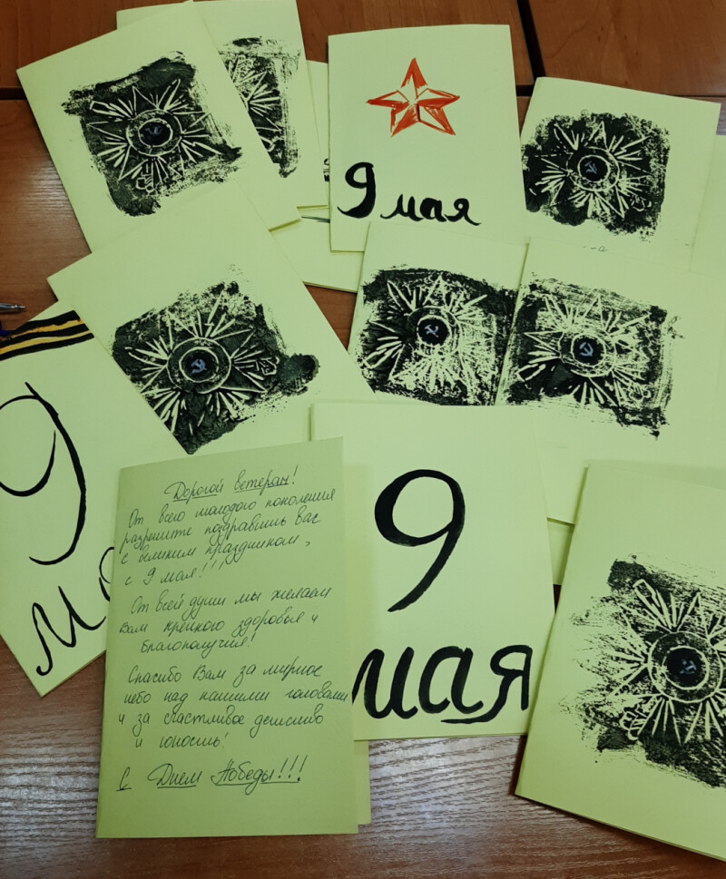 Совместно подготовлены открытки ветеранам Великой Отечественной Войны для дальнейшего поздравления накануне Дня Победы.