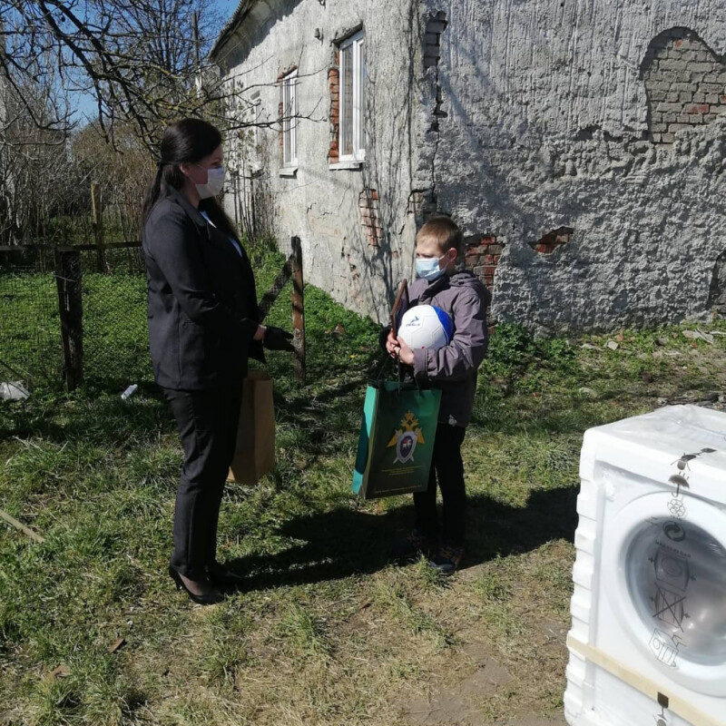 Ирина Миколовна совместно с руководителем Следственного управления Следственного комитета РФ по Калининградской области Дмитрием Бочаровым приехали, чтобы (соблюдая все рекомендации в связи с эпидемиологической обстановкой) передать помощь семье, оказавшейся в трудном положении, и поблагодарить юного героя.