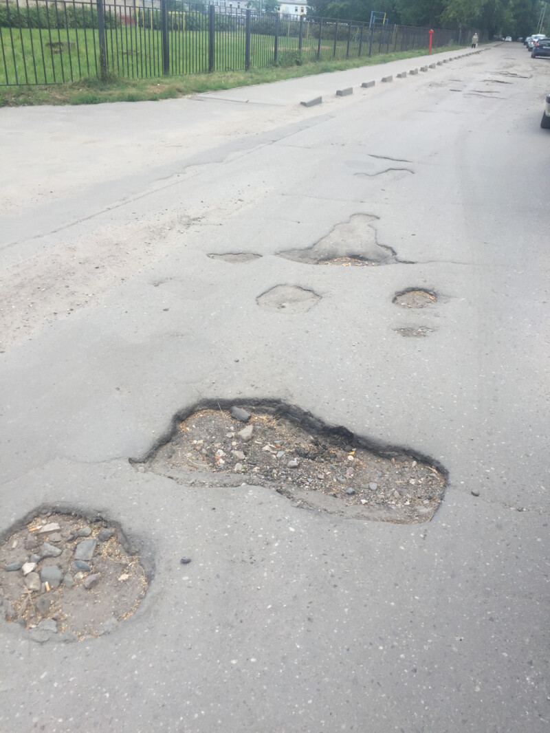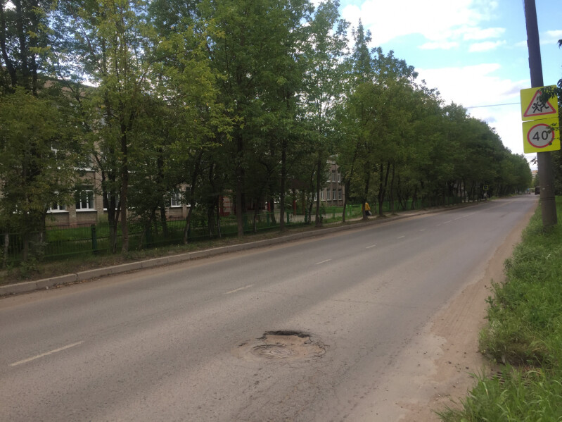Кроме того, вблизи школ № 66 и № 20 в ненадлежащем состоянии находится проезжая часть: на дороге большие выбоины, ямы. Около школы № 17 на проезжей части провалился люк. На улице Демьяна Бедного около лицея № 67 растительностью закрыт дорожный знак «Дети».