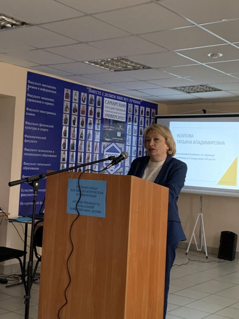 22 сентября 2020 года Уполномоченный по правам ребенка в Самарской области Т.В. Козлова приняла участие в работе региональной научно-практической конференции «Преемственность поколений в воспитании детей», организуемой Самарским социально-педагогическим институтом и РОО «Союз женщин Самарской области». Уполномоченный по правам ребенка акцентировал внимание на важности различных аспектов преемственности поколений: исторической преемственности - для формирования у подрастающего поколения чувства патриотизма, гражданственности, уважения к правам и свободам человека, педагогический аспект – для организации работы с родителями и детьми о важности сохранения семейных традиций; семейная преемственность поколений – участие старшего поколения в воспитании внуком, забота о пожилых членах семьи со стороны детей и внуков; преемственность в трудовом воспитании – семейные трудовые традиции и другое.