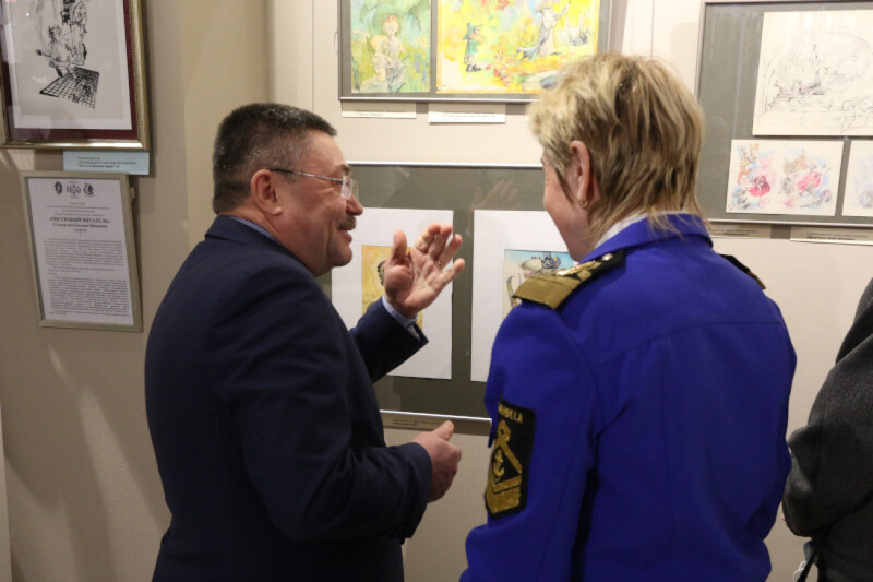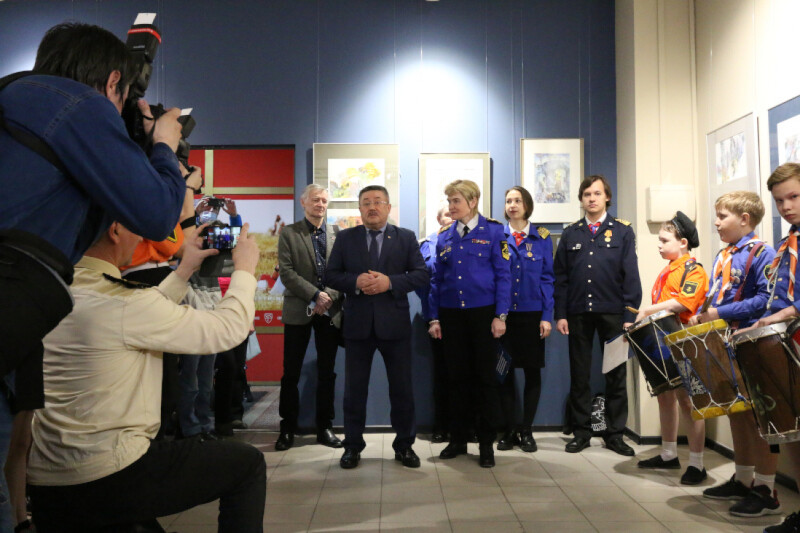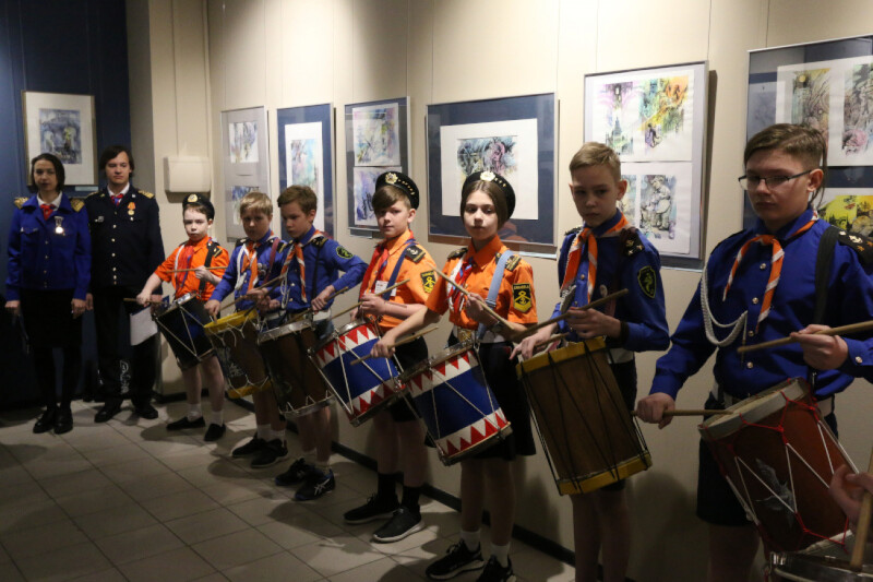 В открытии выставки приняли участие председатель Свердловского отделения Союза художников России, заслуженный художник РФ, член-корреспондент Российской академии художеств Сергей Айнутдинов, командор центра гражданско-патриотического воспитания «Каравелла» Лариса Крапивина, Уполномоченный по правам ребёнка в Свердловской области Игорь Мороков и воспитанники отрядов «Каравелла» и «Флагман».