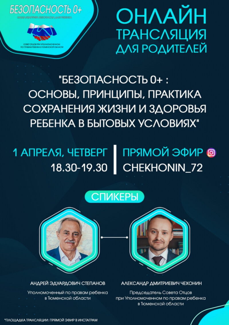 В прямом эфире приняли участие Уполномоченный по правам ребенка в Тюменской области, Андрей Степанов, председатель Совета отцов при Уполномоченном по правам ребенка в Тюменской области, Александр Чехонин и руководитель проекта , Павел Притупа. В ходе встречи, участники обсудили механизмы предотвращения выпадений детей из окон и бытовой травматизации, защиты жилья от пожаров и иные важные аспекты сохранения детской жизни и здоровья.