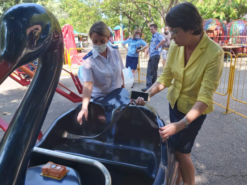 В ходе рейда осуществлен выезд в детский эко-парк «Лукоморье» и на городской пляж «Учкуевка». Выявлены отдельные нарушения при эксплуатации батутов. В частности, на пляже «Учкуевка» установлен батут «Горка» без разрешительных документов. Владельцем данного аттракциона его проверка на соответствие требованиям безопасности не проведена, в органах Гостехнадзора он не зарегистрирован.