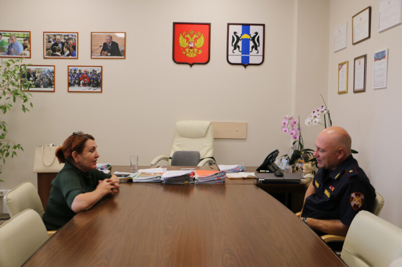 6 августа в аппарате Уполномоченного по правам ребенка в Новосибирской области прошла рабочая встреча детского омбудсмена Надежды Болтенко с начальником управления Федеральной службы войск национальной гвардии Российской Федерации по Новосибирской области, генерал-майором полиции Василием Шушаковым.