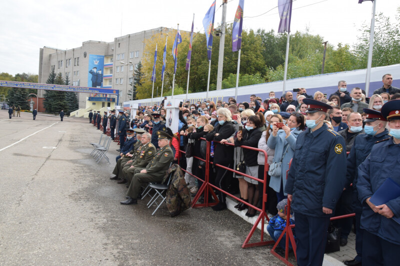 На торжественном построении присутствовали почетные гости, ветераны института, курсанты, родные и близкие первокурсников. Первокурсники произнесли Клятву на верность Закону, народу и России, а затем им вручили служебные удостоверения.