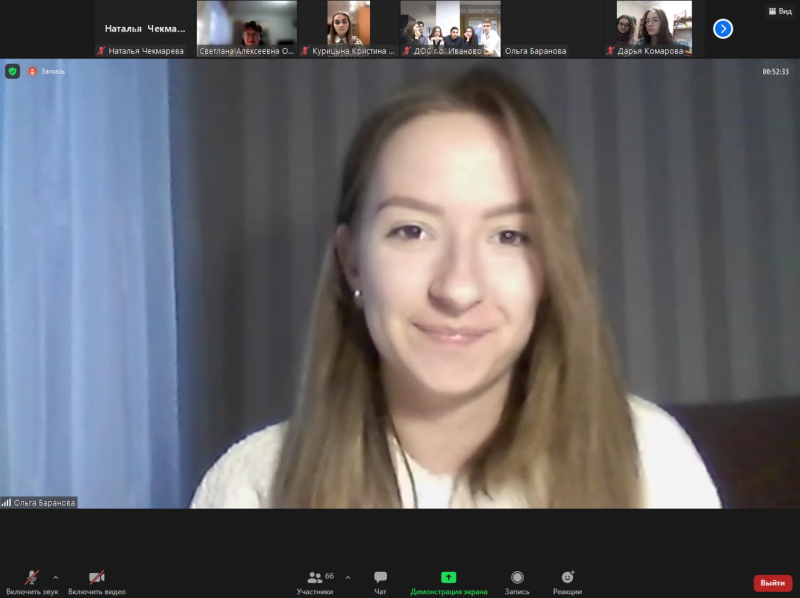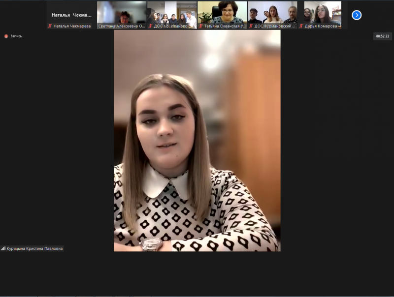 Участие в заседании приняли Уполномоченный по правам ребенка в Ивановской области Татьяна Петровна Океанская; декан юридического факультета, доцент кафедры конституционного и муниципального права Ивановского филиала Российской академии народного хозяйства и государственной службы при Президенте Российской Федерации (РАНХиГС) Игорь Витальевич Чебыкин; исполнительный директор — руководитель Аппарата Ивановского регионального отделения «Ассоциация юристов России» Ольга Игоревна Бельденинова; преподаватели, студенты Ивановского филиала РАНХиГС и, конечно, активисты Детского общественного совета и их кураторы в муниципалитетах.