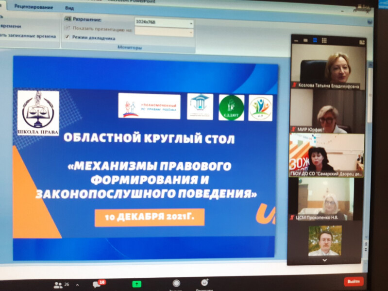 10 декабря 2021 года во Всемирный день прав человека Уполномоченный по правам ребенка в Самарской области Т.В. Козлова в режиме ВСК приняла участие в правовом круглом столе с педагогами школ, где обсуждались механизмы организации работы по правовому просвещению, формированию правовой культуры и законопослушного поведения несовершеннолетних. Уполномоченный по правам ребенка рассказала о таких технологиях организации правового просвещения, реализующихся в Самарской области, как «Декада правовых знаний», «Детский парламентский час», ежеквартальные видеоконференции «Имею право знать», «Детский общественный совет при Уполномоченном по правам ребенка», «Областная школа права» и др.
