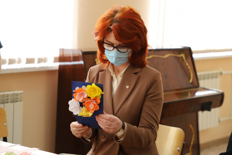 На момент посещения Уполномоченным по правам ребенка в ЦВСНП находилась одна девочка. Анжелика Евдокимова пообщалась с подростком на тему правопослушного поведения, отношений в семье и важности учебы. В свою очередь девочка рассказала о своих планах и мечтах, а также подарила гостье поздравительную открытку в честь приближающегося Международного женского дня, сделанную собственными руками.