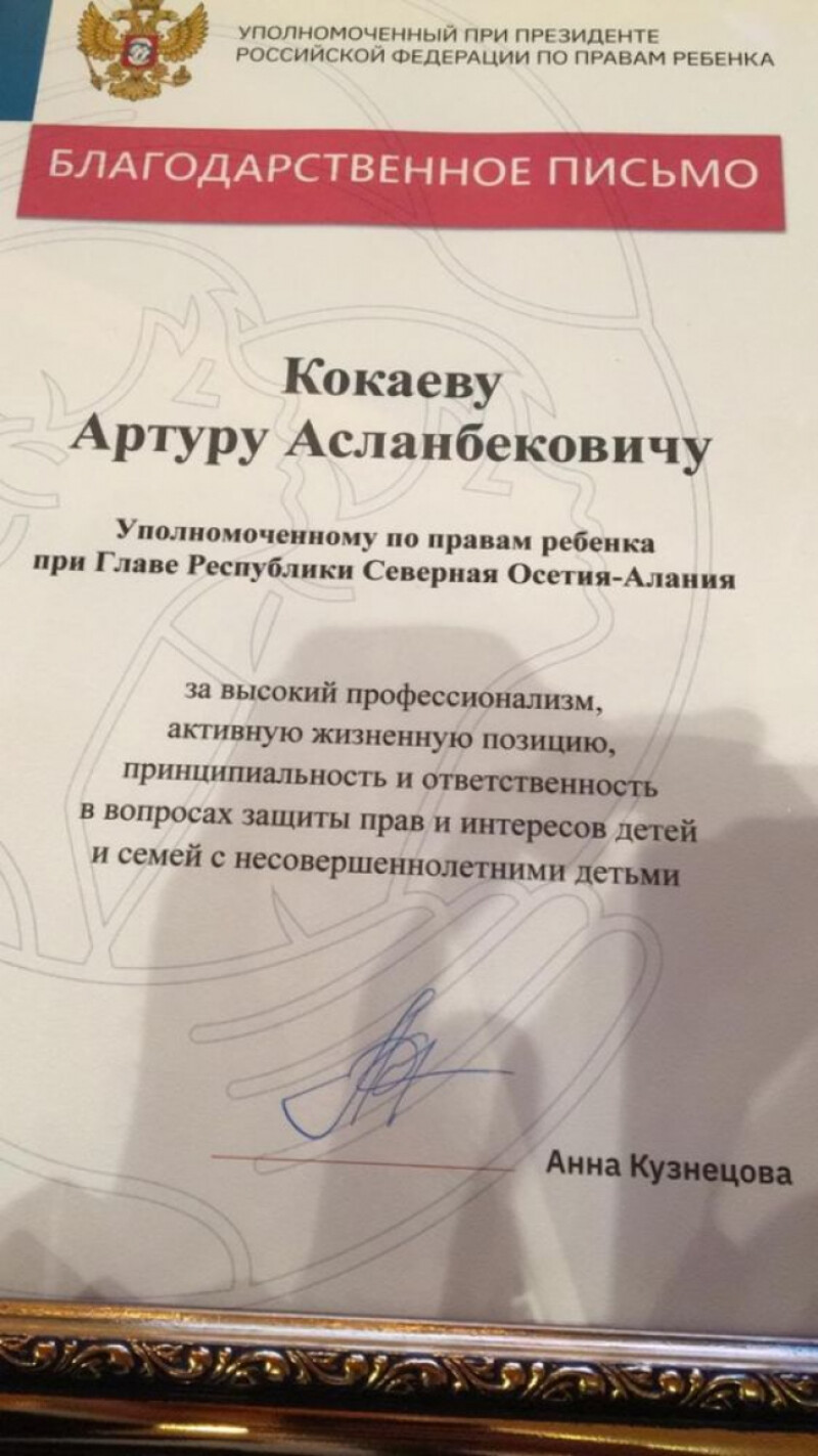 В рамках Всероссийского конгресса "Вектор "Детство-2019" отмечен благодарственным письмом за подписью Уполномоченного по правам ребенка в РФ Анны Кузнецовой.