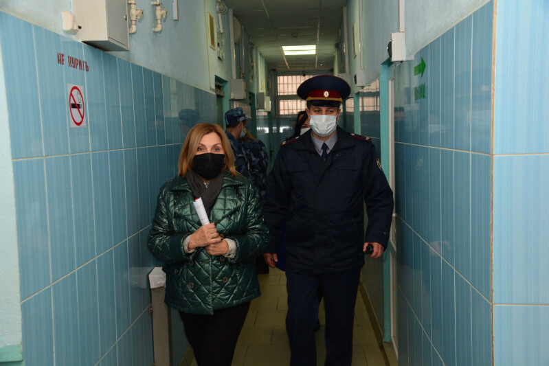 В сопровождении начальника СИЗО № 1 Петра Синюкова, Уполномоченный ознакомилась с условиями содержания несовершеннолетних, организацией учебного процесса и досуга, качеством питания и обеспечением необходимыми медикаментами.