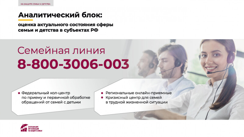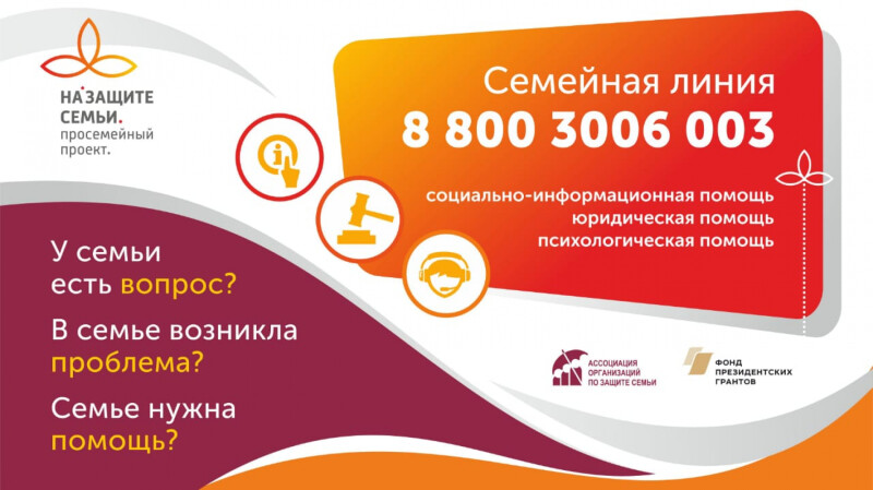 В рамках проекта открыта Семейная горячая линия 8-800-3006-003, на которую могут поступать обращения от семей с детьми по различным вопросам из всех регионов России.