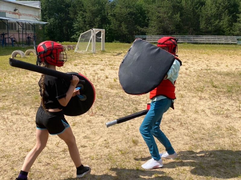На базе лагеря работают различные кружки и секции. Особый интерес у гостей вызвал кружок борьбы на мечах. Для занятий есть всё необходимое: мягкие тренировочные мечи, щиты, специальная защита для головы, корпуса, рук и ног. В эту смену в «Чайке» отдыхают, в том числе, и юные чемпионы Европы, России и мира по мечевой борьбе. Мастер-класс по владению мечом для Татьяны Анатольевны провела чемпионка мира по современному мечевому бою в категории 8-11лет Варя Бахолдина.