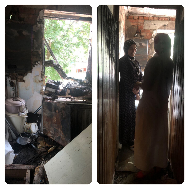 С пострадавшего жилья единственное, что уцелело- были Священные Кораны. Стены, потолки, вещи, бытовая техника, всё было закопчено.