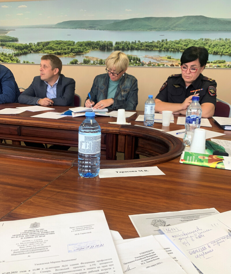 7 сентября 2022 года Врио Уполномоченного по правам ребёнка в Самарской области М.В. Тарасова приняла участие в рабочей встрече с представителями субъектов системы профилактики безнадзорности в Самарской области по вопросам организации мероприятий, направленных на раннюю профилактику правонарушений и преступлений среди несовершеннолетних, в том числе о мерах по вовлечению подростков, состоящих на учете в органах внутренних дел Самарской области в организованные формы досуга и занятости, деятельность общественных (волонтерских) организаций, учреждений культуры и дополнительного образования, а также в области физической культуры и спорта, в том числе в деятельность спортивных клубов и секций.