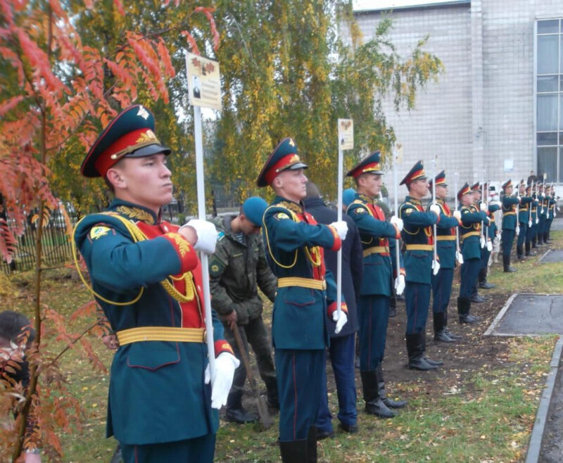 В организованной Уполномоченным по правам ребенка патриотической акции активно приняли участие ректор Новосибирского государственного аграрного университета Евгений Рудой, предоставивший 34 саженца рябины ровно по числу Героев училища; глава администрации Советского района Дмитрий Олейников; руководство и курсанты училища; юнармейцы СОШ № 102.