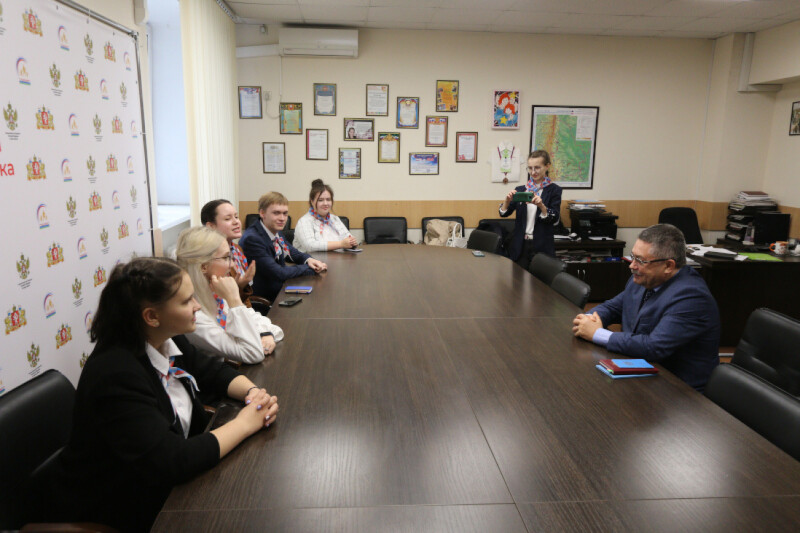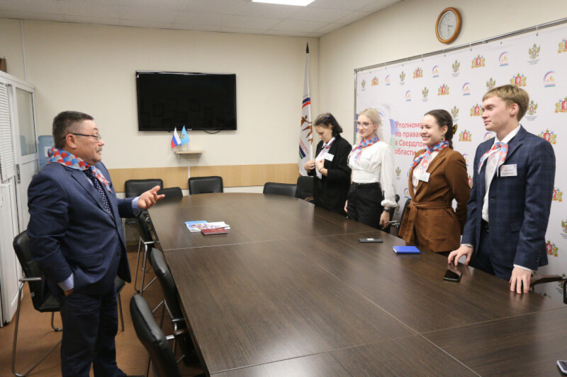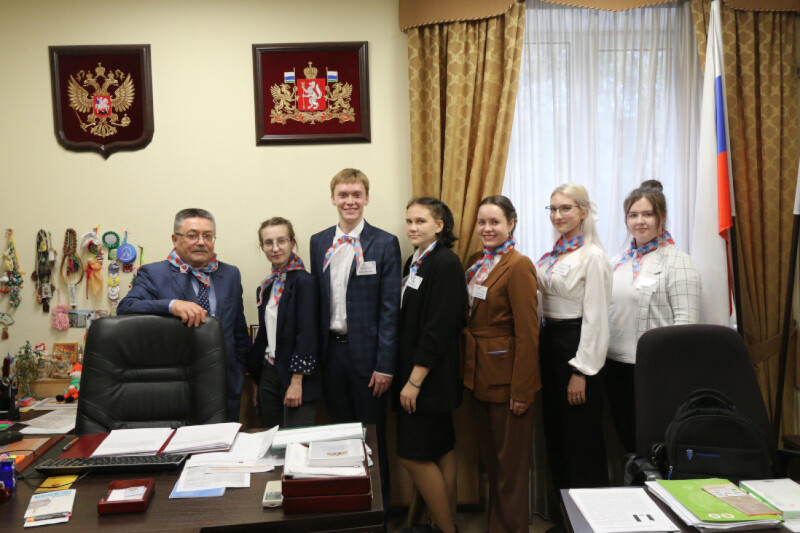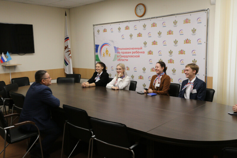 13 октября в рамках деятельности Детского общественного совета при Уполномоченном по правам ребенка в Свердловской области в гости к Игорю Морокову приехали ученики 11 класса и советник директора по воспитанию и взаимодействию с детскими общественными объединениями школы №1 города Арамиля.