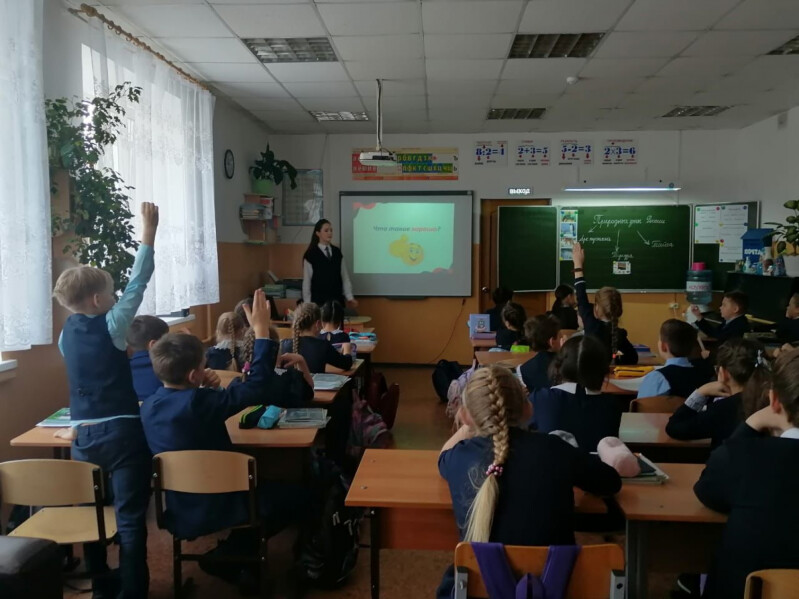 На снимке: классный час с младшими школьниками проводит член Совета Мария М.