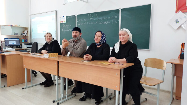 Уполномоченный по правам ребенка в Чеченской Республике Хамзат Хирахматов вместе со своими коллегами по работе: ответственным секретарем Общероссийской общественной организации "Национальная родительская ассоциация" Марет Зумаевой, председателем Межрегионального общественного движения "Диалог" Лайлаъ Аюбовой, посетили МБОУ СОШ № 26 г.Грозный Чеченской Республики, где провели встречу с учениками 8 классов, в рамках Единой концепции духовно-нравственного, патриотического воспитания и развития подрастающего поколения.