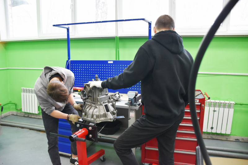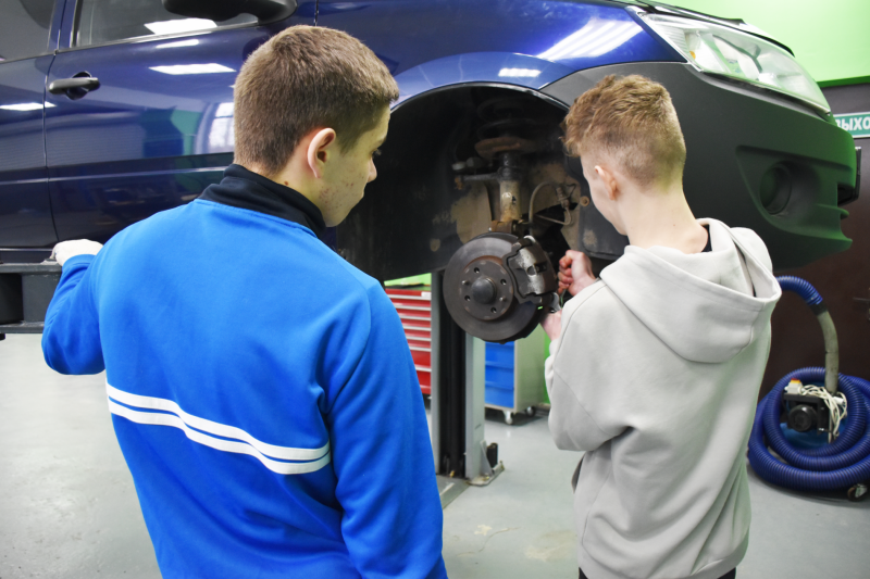 В процессе профессиональной пробы ребята попробовали себя в роли слесаря по ремонту автомобиля: им удалось осуществить ремонт двигателя, коробки передач и тормозной системы. Это позволило им узнать много нового о данном профессиональном направлении.