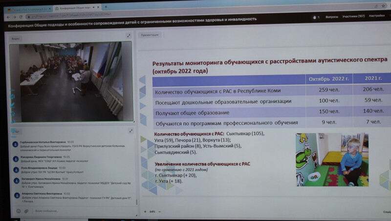 Детский омбудсмен выступила с докладом об актуальности и значимости организации сопровождения детей с ограниченными возможностями здоровья и инвалидностью в образовательных организациях Республики Коми. На сегодняшний день в республике 285 детей официально имеют расстройства аутистического спектра. Понятно, что не все дети выявлены и получают необходимую помощь.